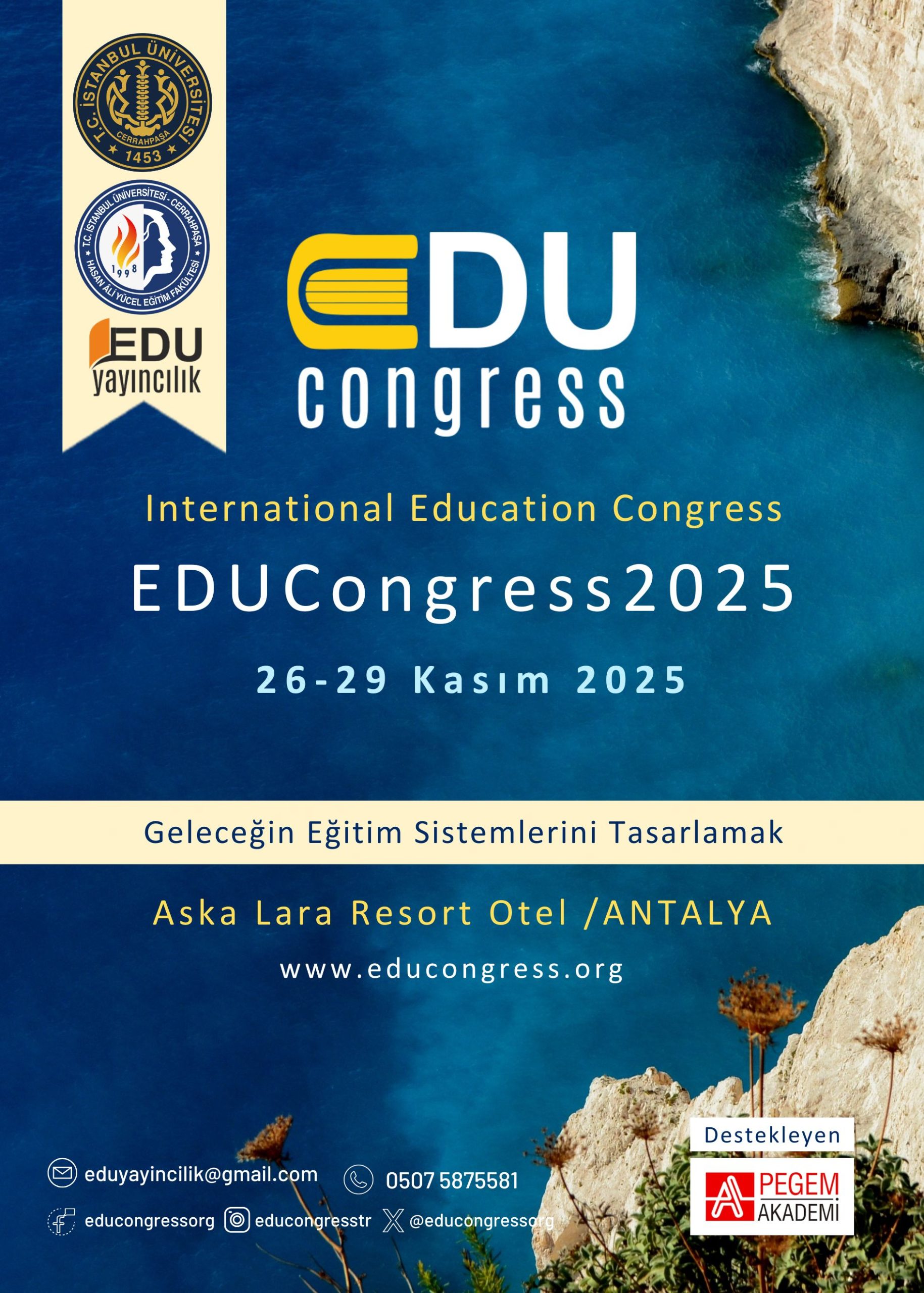Değerli katılımcılarımız, EDUCongress2025’de sunulan bildirilerin kitap bölümü olarak yayınıyla ilgili yayın ilkelerini hazırladık. Yayın olanaklarına ve ilkelere aşağıdaki linkten ulaşabilirsiniz. https://educongress.org/wp-content/uploads/2025/12/EDUCONGRESS2025-KITAP-BOLUMU-YAYINI.pdf