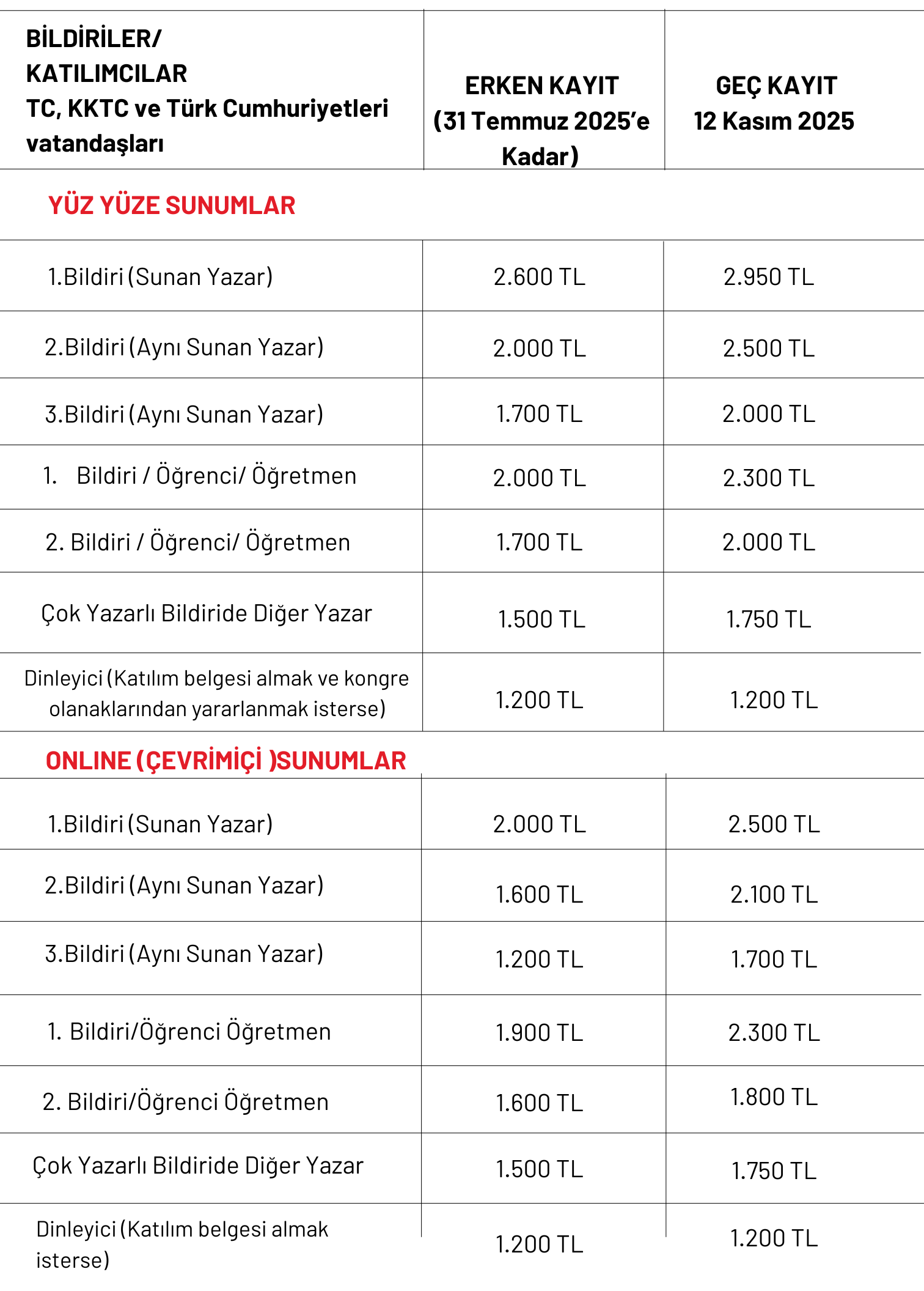 BİLDİRİ VE KATILIM ÜCRETLERİ/ÖDEME